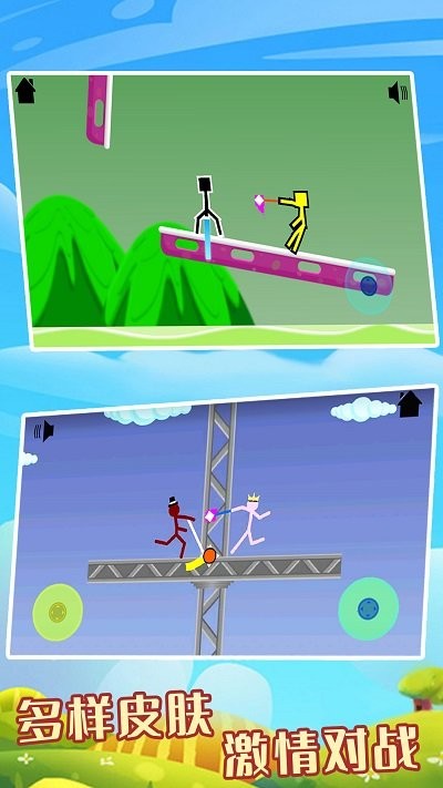 3、采用与众不同的Q版形象,在火柴人互殴的同时,动作技艺和场景设计也赋予了游戏精彩的视觉效果。