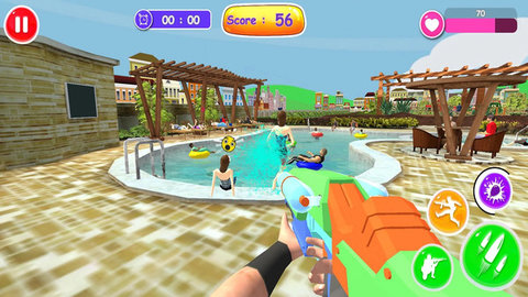水枪模拟器是一款卡通画风的休闲射击游戏,还需要抽水,在我们射击的时候,游戏里的有各种各样的款式水枪和场景,使用你自己的水枪进行攻击,让游戏更加真实性,保证你自己获得比赛的第一。