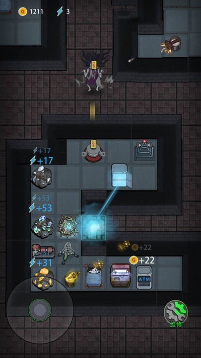 5.在游戏中放置炮塔,以保护宿舍中的角色,并使用各种炮塔来击败邪恶灵魂的攻击。