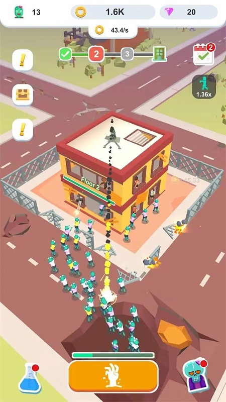 2、玩家可以制造出越来越多的僵尸在城市中四处搞破坏,通过破坏获取的金币可以强化僵尸的各个方面,从而进一步提高破坏城市的效率。