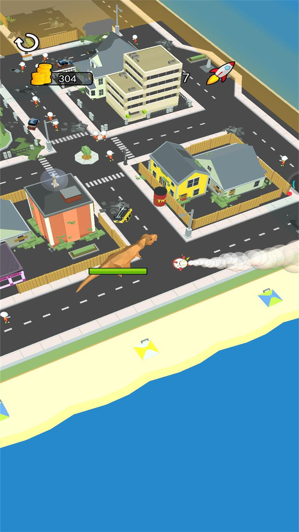 是一款休闲射击游戏,和平常射击游戏不一样,在这里,玩家是需要抵御的是恐龙,打败恐龙,保护人民的安全。