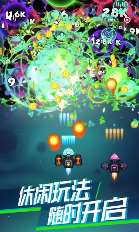 1、展现你灵活的技巧和操控能力,让你的战机在大量的virus中自由的穿梭射击;