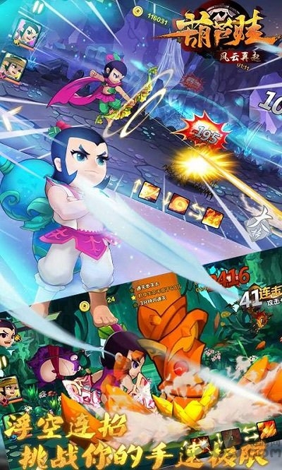 葫芦娃风云再起最新版本是以葫芦娃为蓝本全新打造格斗对战游戏,经典人物剧情和内容,多样化的武器炫酷特效流光,华丽效果和爽快节奏打击快感。全新自由度游戏玩法,玩家能够全新体验不一样游戏乐趣。如果你也想玩的话,赶紧来安卓网下载吧!