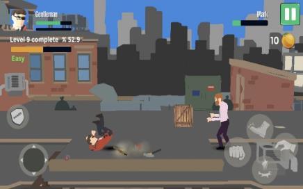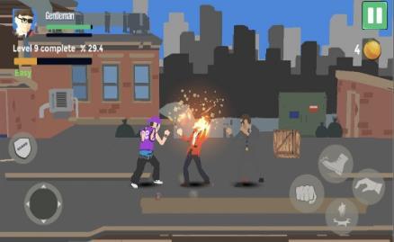 热闹的街头格斗随时准备开打在对方袭击主角的时候一定要做出回应;可以用拳头袭击对手的脸部造成暴击打击持续使用武器进攻敌人的情况下很快能够让自己获得胜利。暴力几乎可以解决你的一切横版地图上的很多危机都必须亲自出手加以解决;