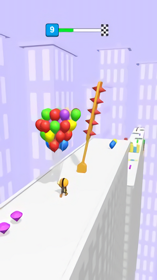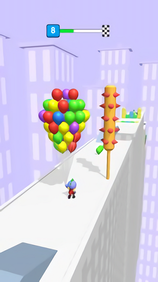 玩家可以选择障碍物较少或者障碍物较矮的区域通过这样可以减少玩家消耗的气球增加最终获得的分数;随着玩家游玩的深入关卡的难度也会越来越高玩家需要不断地解锁更多元化的游戏内容来进行挑战和资源的获取;