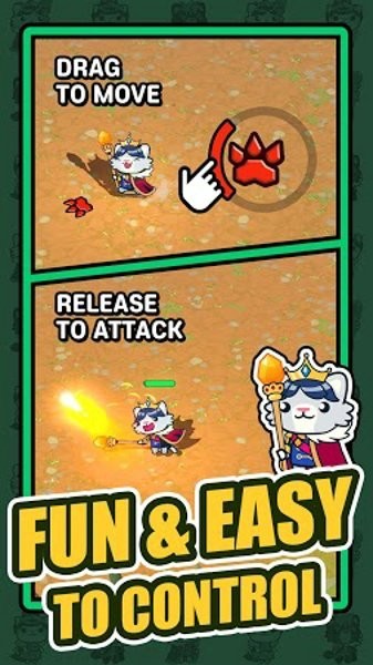 1、超级简单和有意思的操纵,用简易的控制与猫一起挪动和进攻,近在咫尺的地区就可以启动强劲的进攻