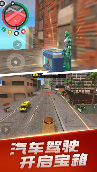 1、一款非常刺激的冒险动作游戏,在游戏中你将成为钢铁英雄,在城市中自由抓捕罪犯,迅速处理所有犯罪事件,自由使用各种超能力,确保整个城市不会陷入危机。