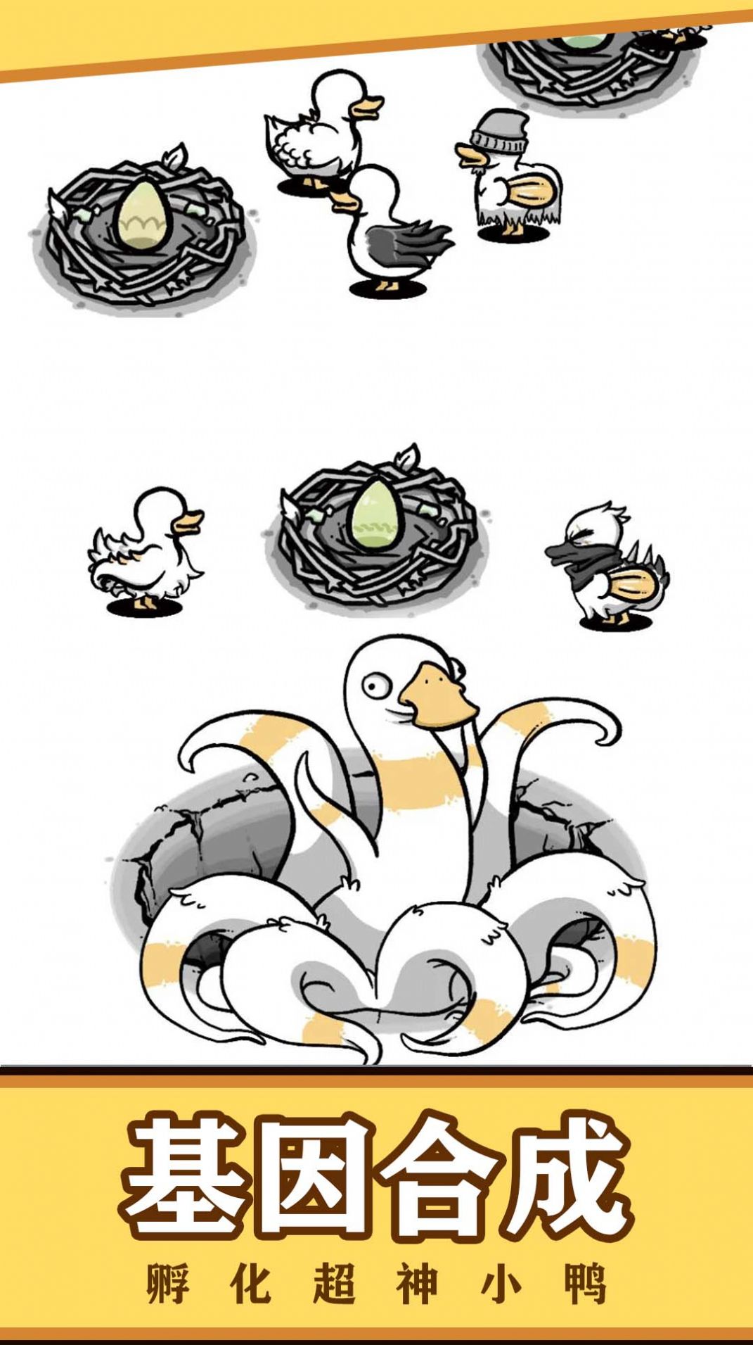 玩家需要不断合成鸭子来升级自己的队伍同时他们需要击败其他鸭子队伍来赢得胜利。游戏中的鸭子都有自己的能力玩家需要根据实际情况选择最适合的鸭子进行合成。合成的鸭子可以增强战斗力解锁更强大的技能。