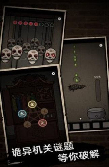 4、山村老屋鬼嫁衣是一款带有非常刺激的冒险解密类游戏,暗黑的画面加上神秘的元素让玩家可以更加毛骨悚然。玩家需要找到各种细微的线索和道具才能逃离出去,像是密室逃脱玩法一般,感受十分精彩刺激的体验。