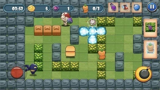 2、在游戏中,玩家可以自由放置炸弹,炸弹的破坏力很强,玩家必须避免自己使用炸弹。