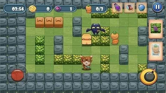 随着迷宫波峰陷阱的进入,游戏画面的危险性随之增加调查迷宫,用炸弹炸毁箱子和敌人,从通往下一关的宝藏门中找到钥匙。而道具系统则提供了丰富的游戏元素,玩家可以通过摧毁特定的墙壁来获取各种特殊道具,如超级炸弹、时间减速器、加速器等,使游戏更加多样化和刺激。