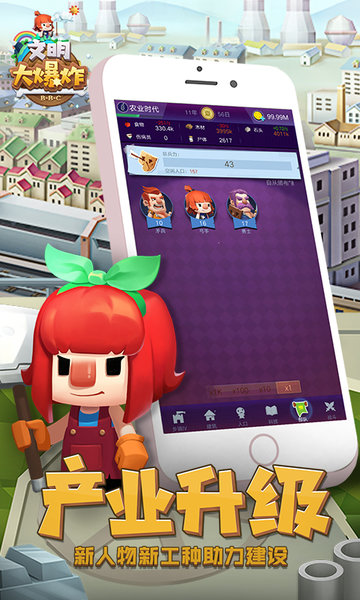 《文明大爆炸》养肝护发的魔性游戏!在《文明大爆炸》中,你将决定文明的进程!这个国度的人口数量、建筑规模、文明程度,都由你决定。想要让你的国度和谐发展,还需要在经营策略上下功夫!