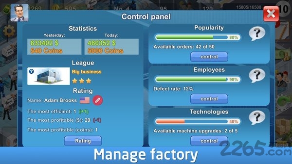 2、游戏中有丰富的升级系统,可以通过升级提高工厂的业务水平和产量,成为富翁。