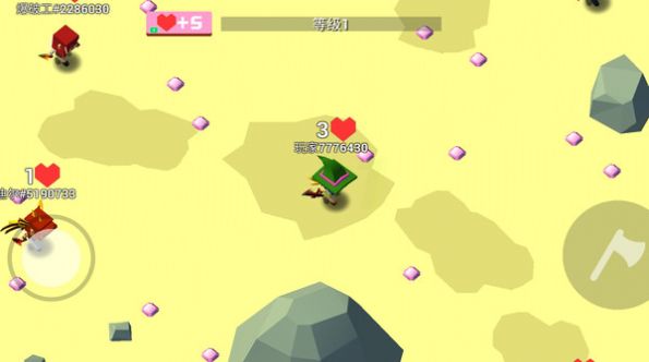 2、扔一把斧子,打败所有的敌人。你也可以坐下来观看战斗,提早躲藏,升级,推迟攻击,消灭剩余的对手,成为战场上的赢家。