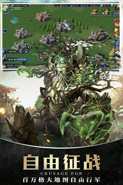 插旗圈地,占领资源。以战养战,攻打野怪,获得更多亡灵大军;挑战不同等级的野怪还可获得更为丰厚的材料和资源等奖励。自由打造属于你自己的帝国!