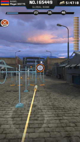 超炫酷的的高清游戏画面第一人称视角的射击体验非常真实的感受;武器库里面有各式各样的枪战你可以随意的选择不断的升级你的枪的配置;练习射击各种物品瓶子桶还有各种会移动的物品瞄准后射击。