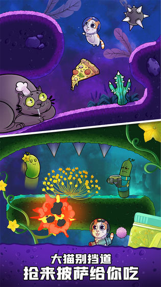 3、游戏充满着挑战性,游戏中你是一只充满传奇色彩的火箭猫,你的唯一使命就是完成太空之旅。