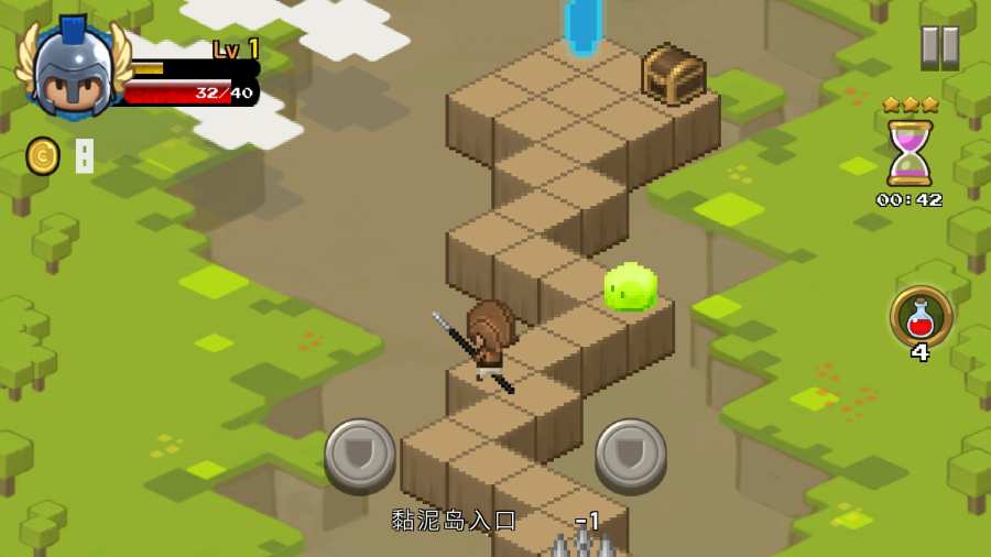 3、玩家需要点击画面左右来控制角色向前移动,路上也会有许多陷阱以及怪物来阻挡玩家的去路,如果不慎失血可以藉由药水来恢复;