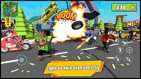 2、在这个射击游戏战场上,你是老板,所以准备好成为一个超级块状英雄或城市中的黑帮。