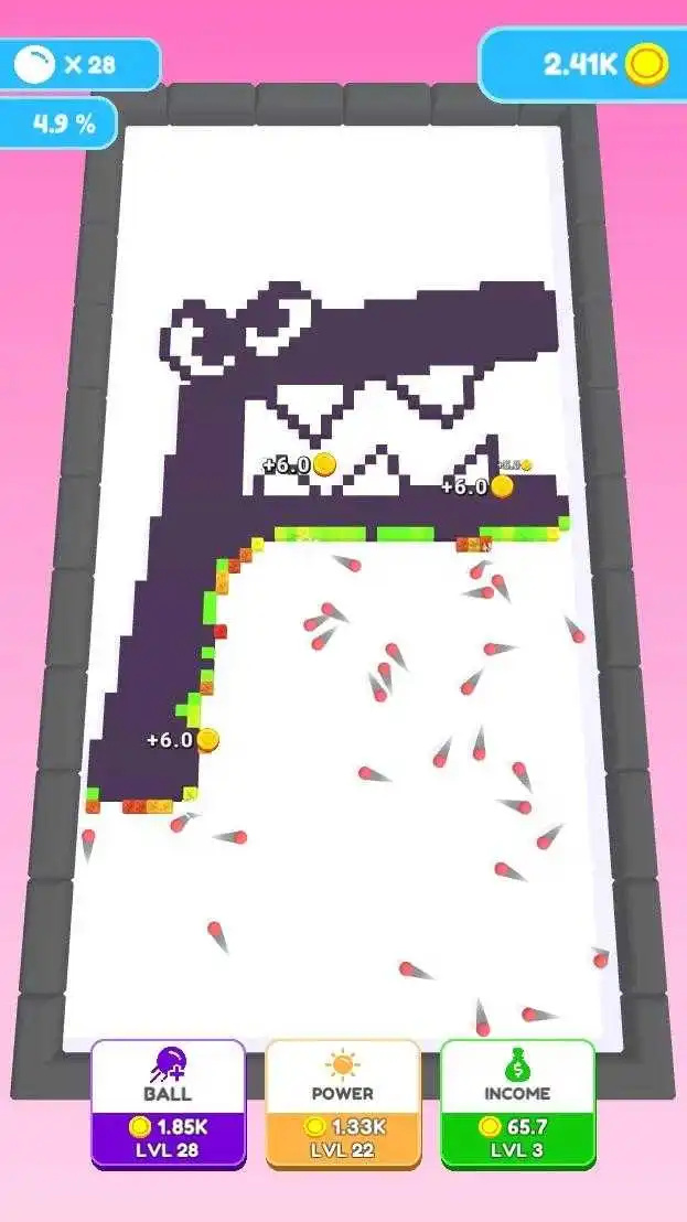 2、玩家在游戏中不断的尝试各种消除策略,成功的粉碎更多的砖块。