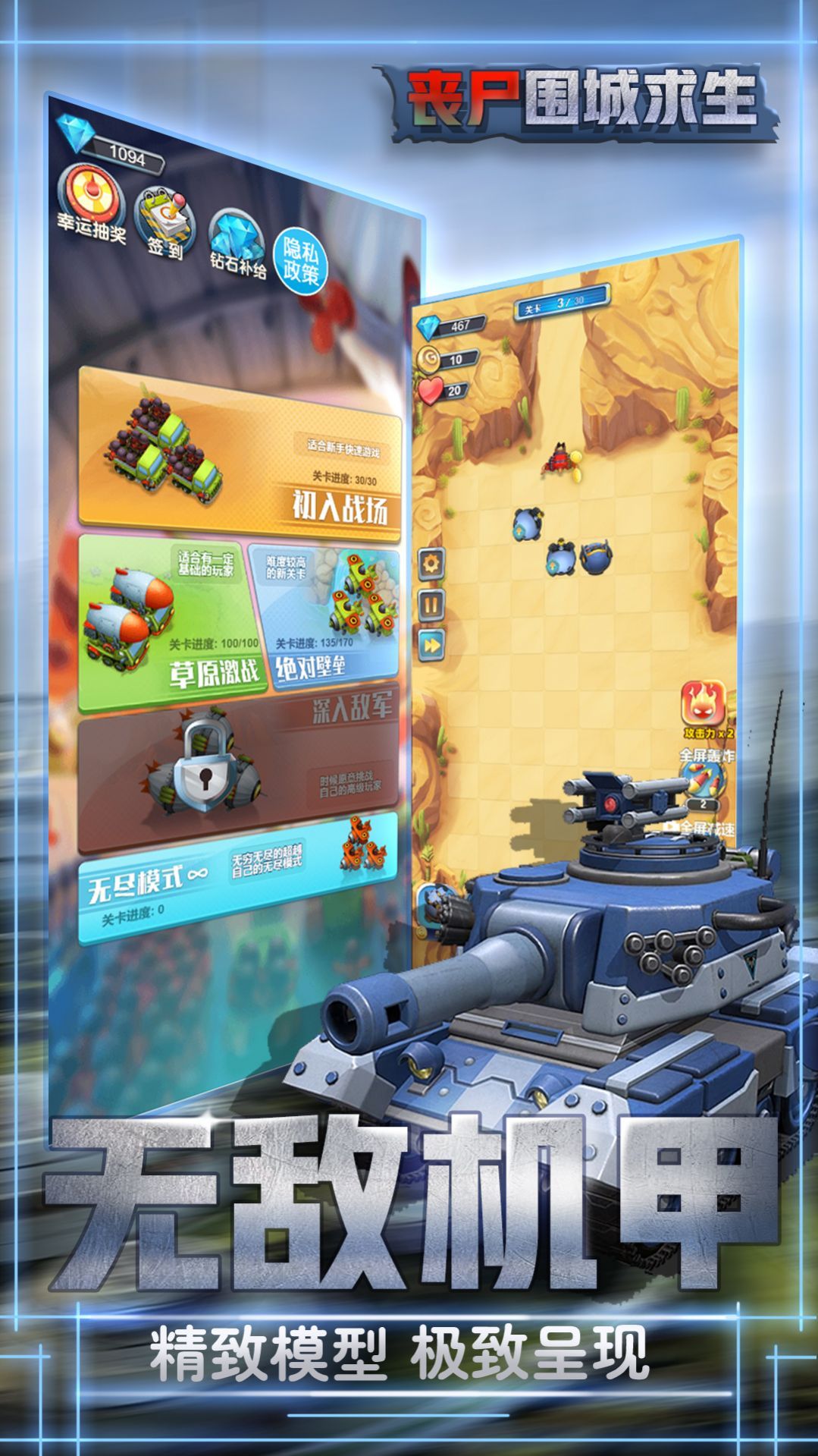 1、丧尸危城求生中采用卡通的游戏画面,每一关的画面清晰呈现。