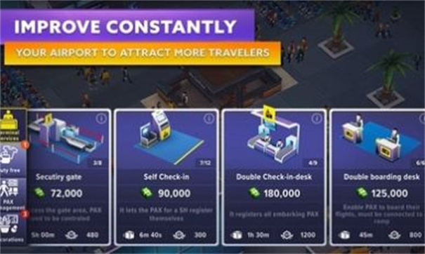 组织您的机场以满足乘客的需求并改善您的服务,以加快流程,提高盈利能力并提供更高的舒适度,这将对您与合作伙伴航空公司的关系产生连锁反应。机场就像一个需要管理的城镇!