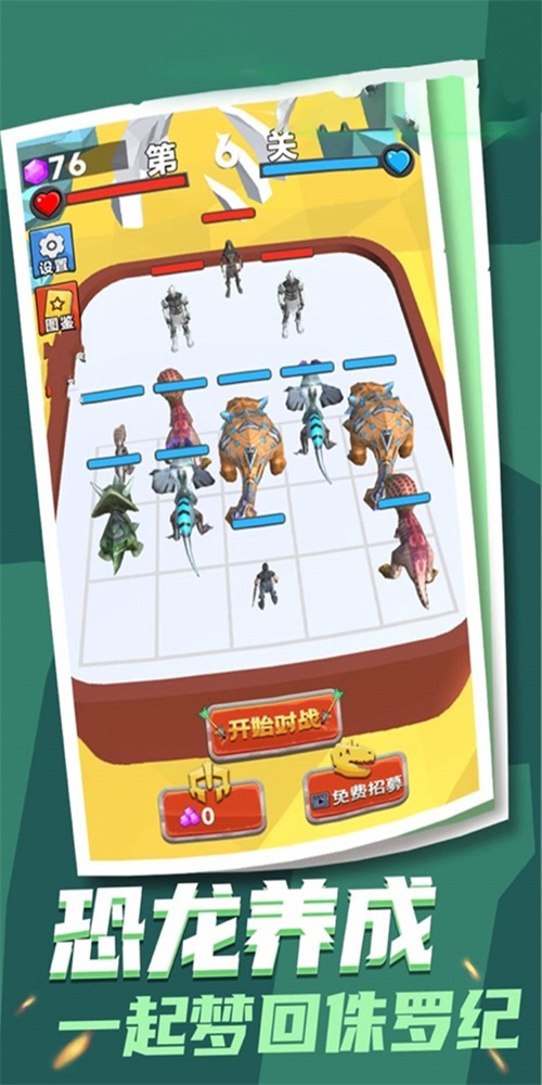 1、 通过合并恐龙和战士,你可以逐渐将你的部队融合成一个巨大而强大的恐龙,释放毁灭性的力量。