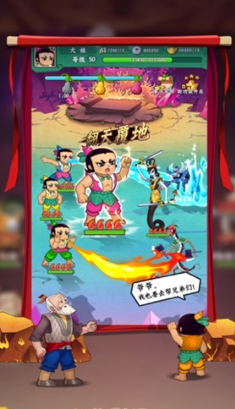 3、一个好汉三个帮,兄弟间的本领配合是降妖的关键,葫芦兄弟的技能羁绊,给妖精造成巨额伤害,让降妖事半功倍哦!