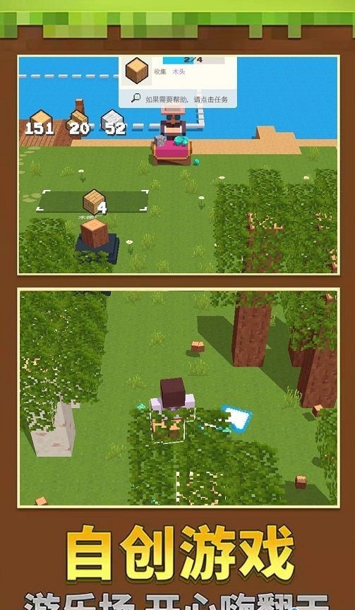 2、发挥无穷的想象力,自由创造更多惊喜,收集更多的资源,其中包含了过多的物品和装备所需材料,以完成不同的挑战。