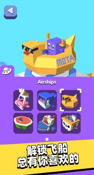 1、金币解锁你需要的道具,驾驶你的UFO开启狂飞,将街道上所有的物品去收取起来。