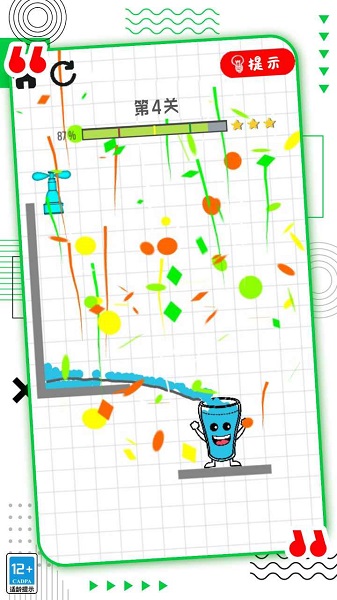 1、玩家需要使用手指在屏幕上画线,让液体从一个容器流向另一个容器;