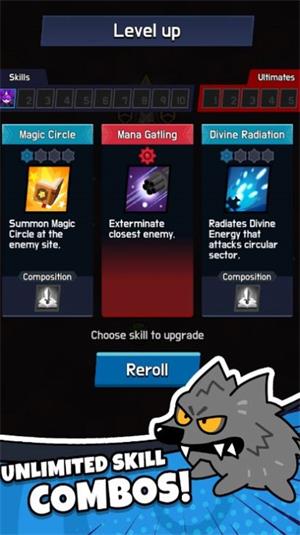 3、随着不断升级,玩家将获得随机技能选择,可以自由匹配,发挥最好的法术能力。