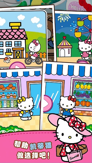 1、主角凯蒂猫公主会带领玩家逛超市、挑选商品、完成任务,非常有趣;2、有各种不同类型的任务,例如寻找商品、帮助爷爷、帮助奶奶等等;