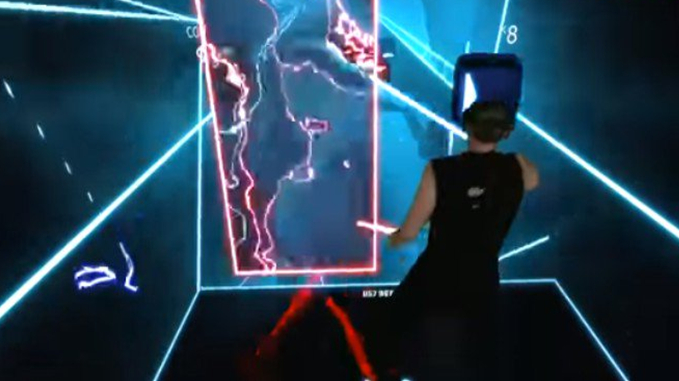 2、击打光剑是考验敏捷性的音乐节奏类小游戏。在游戏里面手拿光剑。
