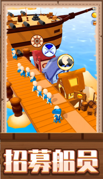 2、在大海上自由航行,招募船员发展自己,不断扩大自己的力量。