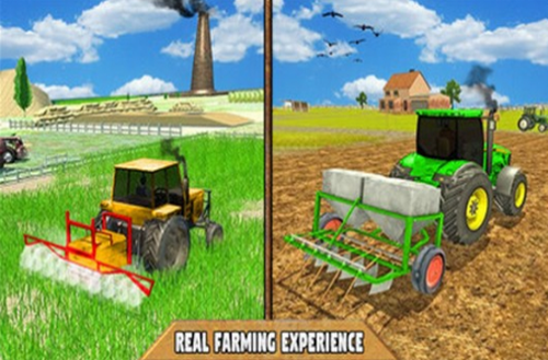 1、游戏开始会赠送你两块耕地,一块需要收割、另一块则需要翻地。我们首先利用那台黄色的收割机进行收割工作,在收割的时候车辆的速度不要太快。当收割机容量满了之后,切换到拖拉机。然后把拖拉机开到收割机的旁边,收割机会自动把小麦装到拖拉机里。