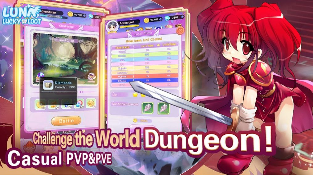 宝箱露娜游戏是一款十分好玩的Q版风格的RPG游戏,不断提升自己的能力,游戏的画风是很经典的二次元的风格,获得各种奖励和惊喜,玩家需要帮助主人公露娜在各种场景中找到宝箱,最终成为无敌的勇者,适合所有年龄段的玩家。