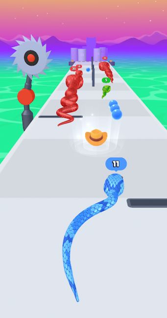 3、这些小蛇都会不断的壮大体积,跑酷的速度也会越来越快。