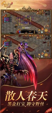 3、挂机模式更加完善,玩家们可以随时随地挂机刷怪,上线即可领取满背包装备。