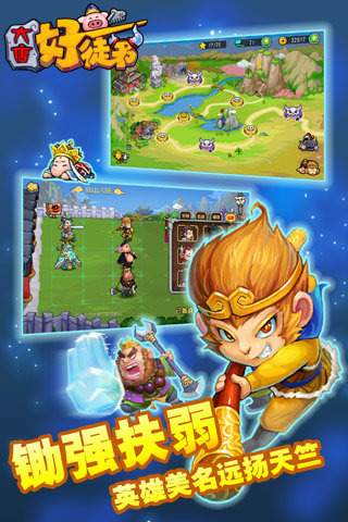 大唐好徒弟手机版游戏剧情源于世界级名著《西游记》,体验更加无厘头的欢乐剧情。每个关卡配送说书先生一枚,讲解剧情,开启章回式游戏先河。完善的神仙、装备收集养成系统,甚至可以收服唐僧,打造最强取经阵容。尽显RPG乐趣。Cocos2D-X引擎支撑,打造最萌动的角色骨骼动画。神仙眷侣之间千丝万缕的关联,带来强大的羁绊属性提升。丰富全面的成就体系,让玩家每一分努力,每一个欢乐瞬间都被铭记。