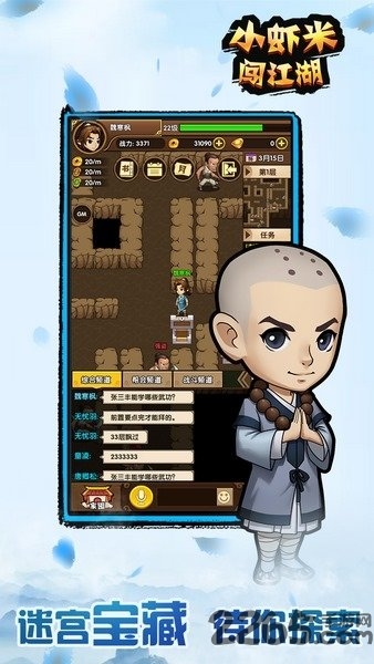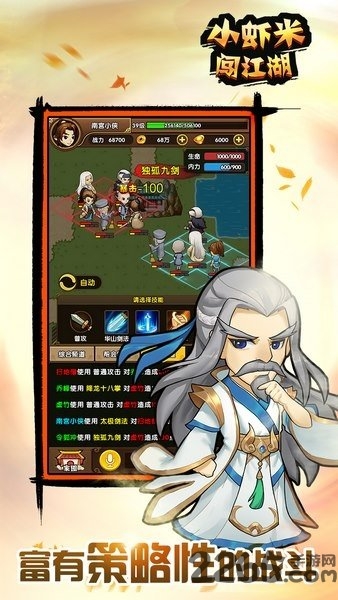4399小虾米闯江湖手游是一款卡通风格的武侠rpg游戏,飞雪连天射白鹿,笑书神侠倚碧鸳,每个人心中都怀有着一个武侠梦,从一个初入武林的毛头小子成长为一代大侠是我们都幻想过的事,现在来安卓网下载小虾米闯江湖完成你的梦想!