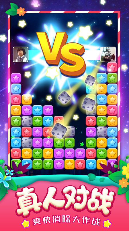 【对战玩法-真人对战】全新对战玩法华丽来袭,在原有消除玩法的基础上,进行了创意设计,玩家可以在游戏中进行消除对战,在限定时间中,通过消除星星互相投掷障碍物,增加了消除乐趣,带来了全新的游戏体验。