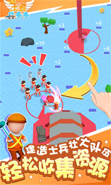王者兵多多为玩家带来了非常好玩的休闲小游戏,游戏的挑战非常丰富,其中不同颜色代表着不同的等级,你所扮演的营地工程师需在地面不断的收集材料,军队越强大战斗力就越强大,在王者兵多多游戏中需要智慧和策略,海量关卡等你挑战,快来加入精彩的战斗吧。