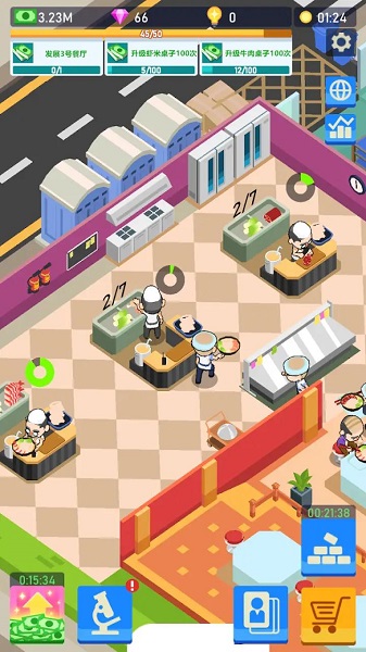 2、升级餐厅,解锁更多区域,解锁大量商业玩法,体验快乐的商业生活。