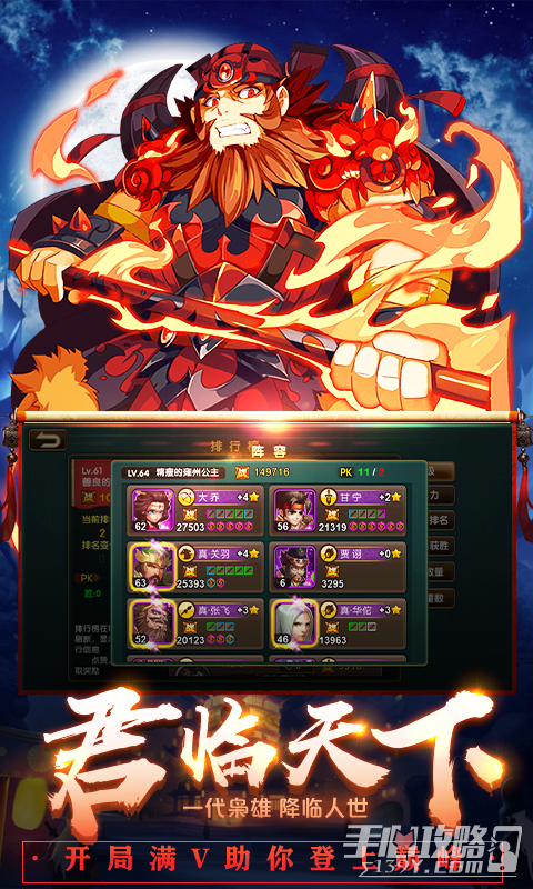 这款游戏给玩家带来了独一无二的策略玩法非常有挑战性玩家需要惊奇的领悟战术。融合了古代的外交方式以及排兵布阵的玩法内容在这个动荡的三国时代里玩家需要缔造历史传奇。对新玩家非常友好只需要登录两天就可以免费领取极品武将夏侯渊如果你连续登录天还可以获得王昭仪。
