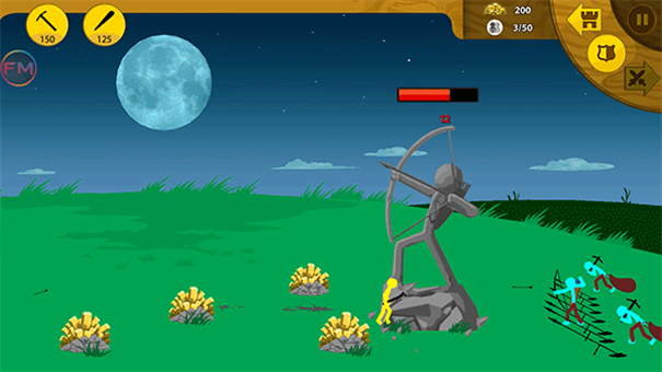 有足够的矿石,就能点击攻击类的火柴人,派遣它们去摧毁敌人的基地。