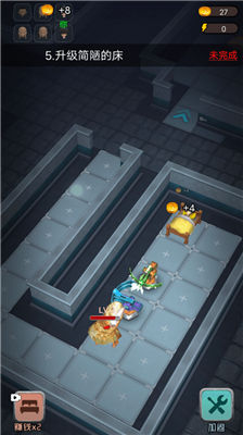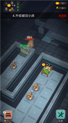 1、升级床:游戏玩家们必须得到越来越多的金币,随后应用金币升级床。
