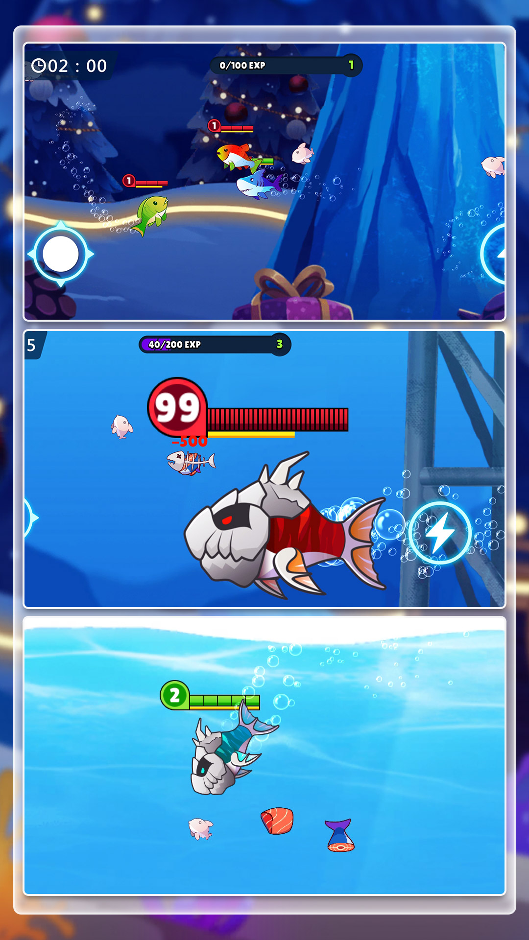 1、需要你控制鲨鱼灵活的进行战斗,快速的打败很多不同的对手。