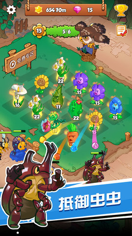 空闲系统。你的花花会自动对抗害虫。即使您处于离线状态,也可以获得金币。