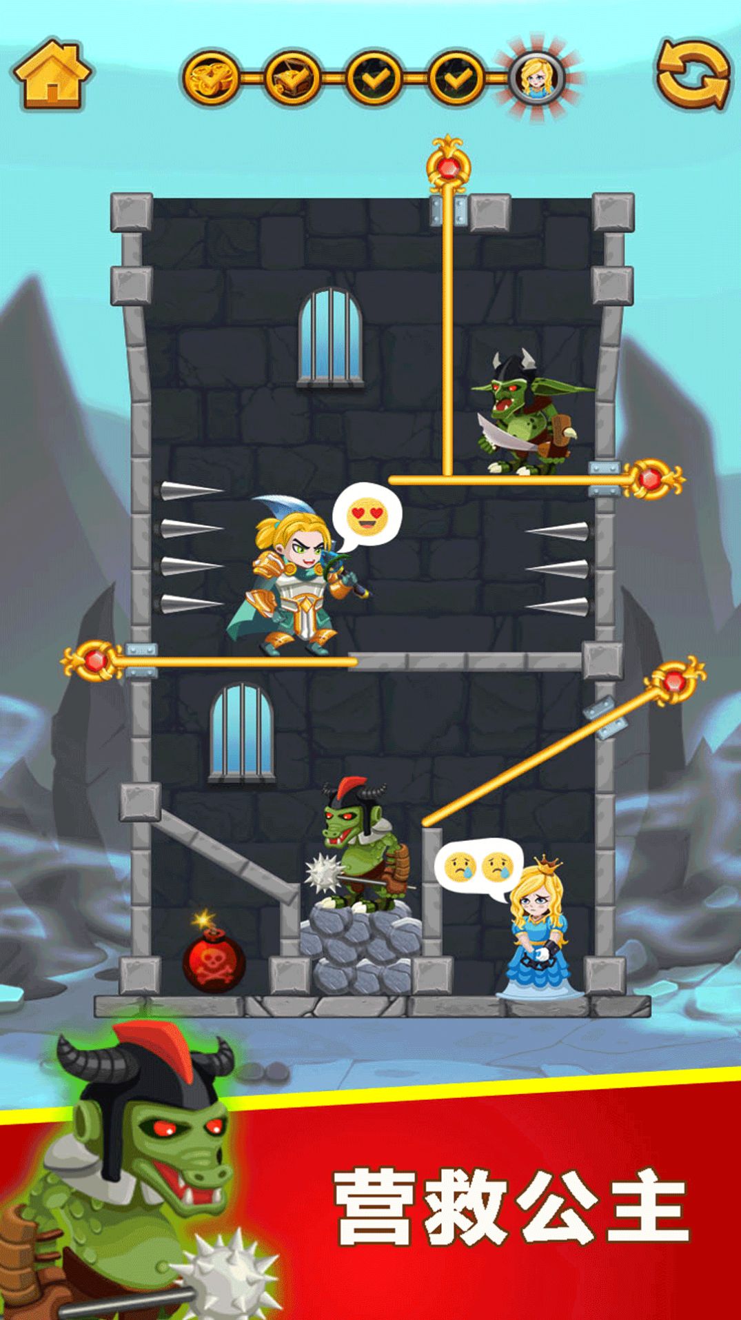 闯关营救小姐姐游戏是一款手机热门的趣味冒险解谜游戏,闯关营救小姐姐游戏这款高品质的游戏采用了顶尖引擎技术,需要通过运用智慧和策略解开关卡中的谜题,以此来破解各种机关和密码,音乐魔性动感,拯救可爱的小妹妹是你的任务,玩家不仅要完成各种难度不同的关卡,玩家将扮演拯救小姐姐的英雄。更多好玩的游戏模式等你来探索。